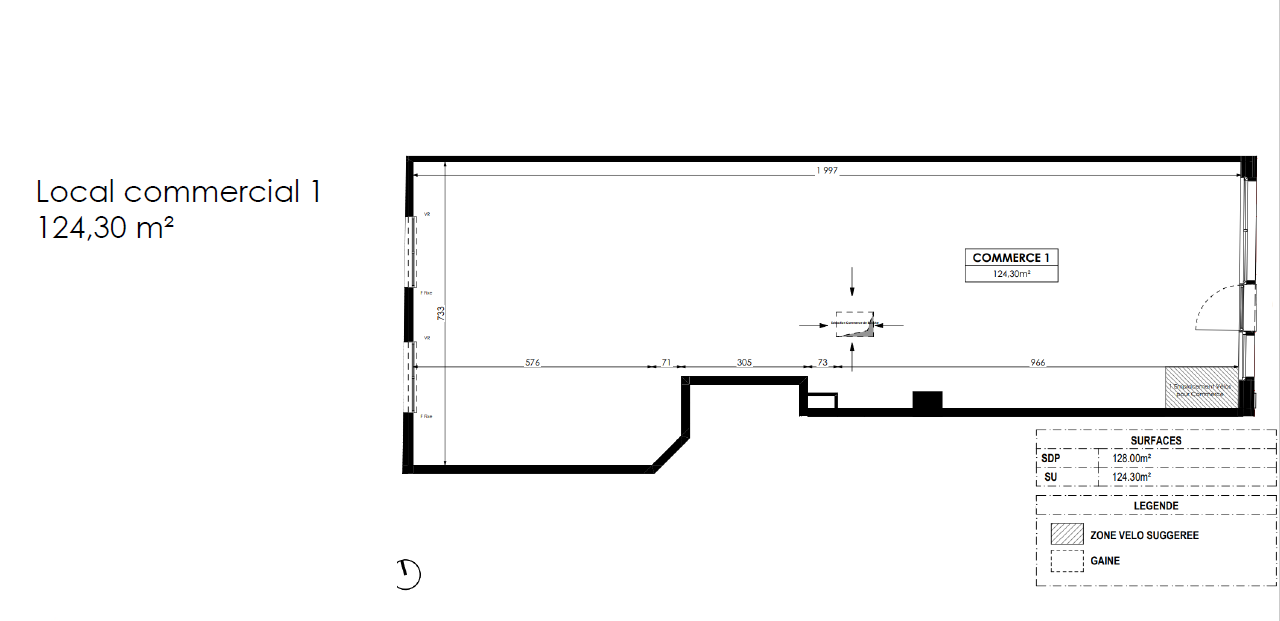 – local 1 : 124.30 m²